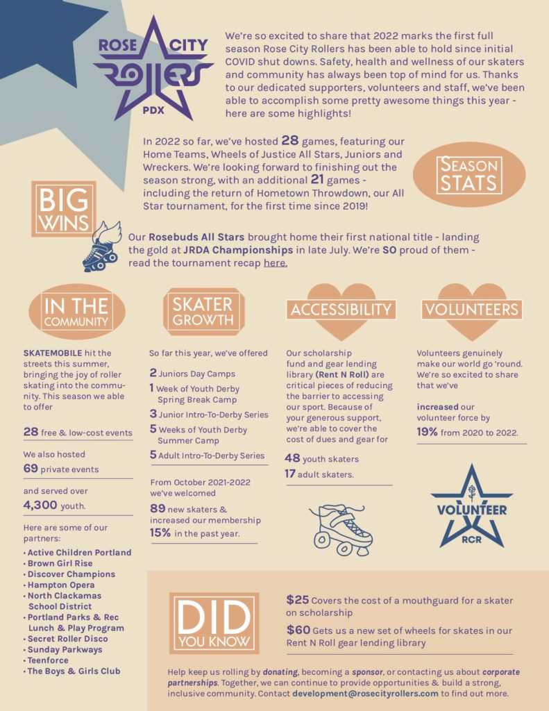 It’s been a big year for Rose City Rollers, and we’re beyond excited to share what we’ve been up to.