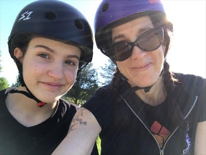 “It was so refreshing to step into a community that represented so much more of the broad and beautiful gender spectrum. It was no small thing for Slam to come to a practice and see other skaters with their pronouns on their helmets, and to see that those pronouns were not limited to she/her. Slamilton has forged strong and authentic friendships with other kids, the kind of friendships that can only come from being able to show up fully as you are.”