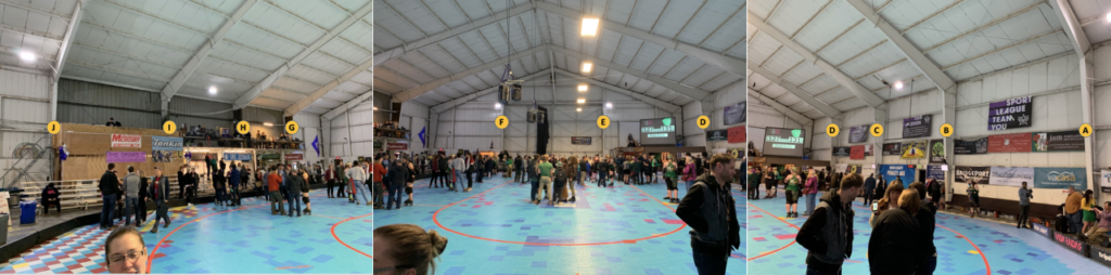 One of the things we learned: document which camera you use, what resolution you’re shooting at, and what angle you’re shooting from. We ended up taking photos of The Hangar’s interior and labeled the columns so we always had a common frame of reference.
