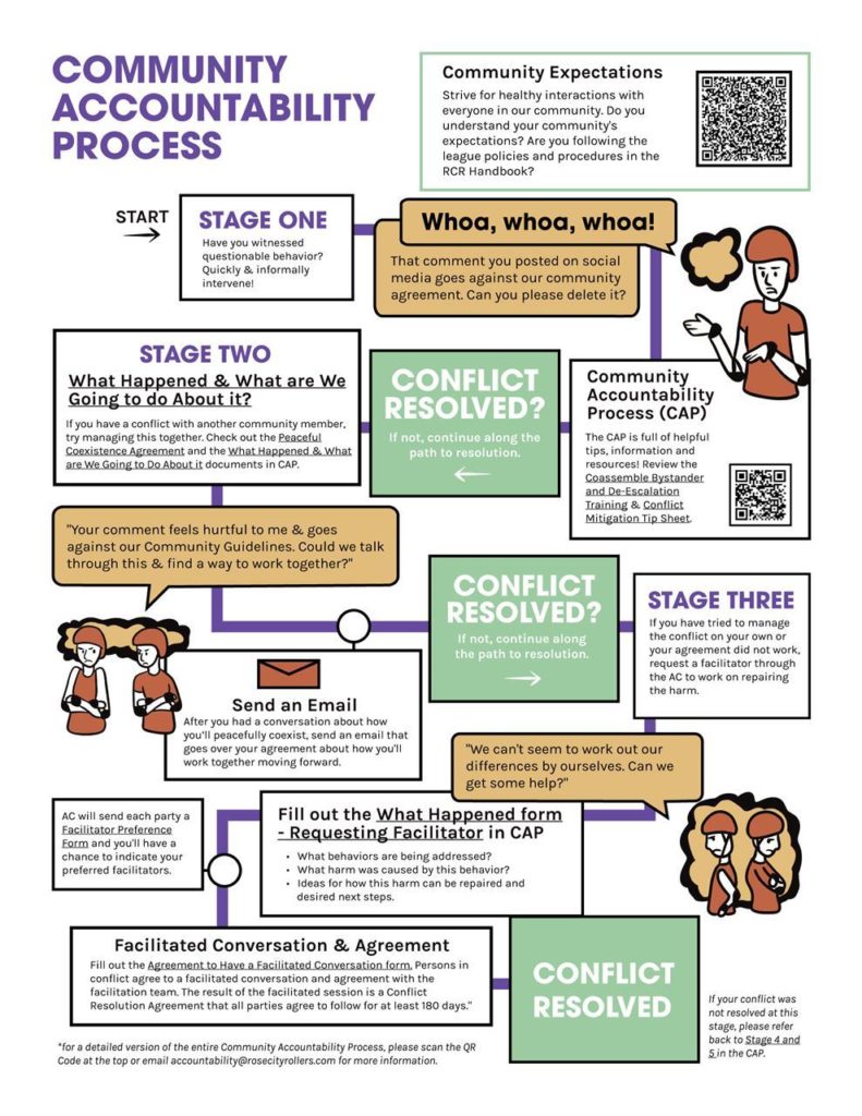 With the help of our Accountability Committee, we’ve created a new Community Accountability Process – we sharing it in the hopes that your league might find it helpful, too.